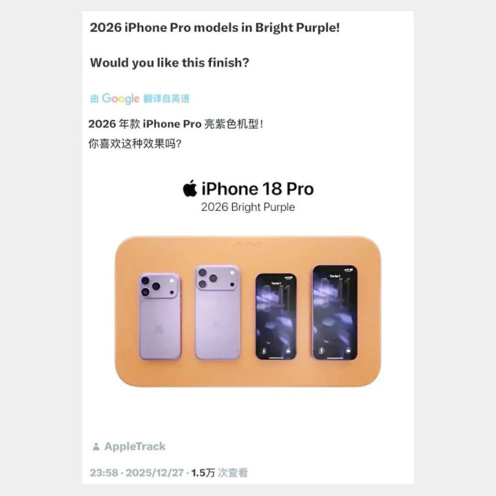 亮紫色 iPhone18ProMax 也在走同样的路。